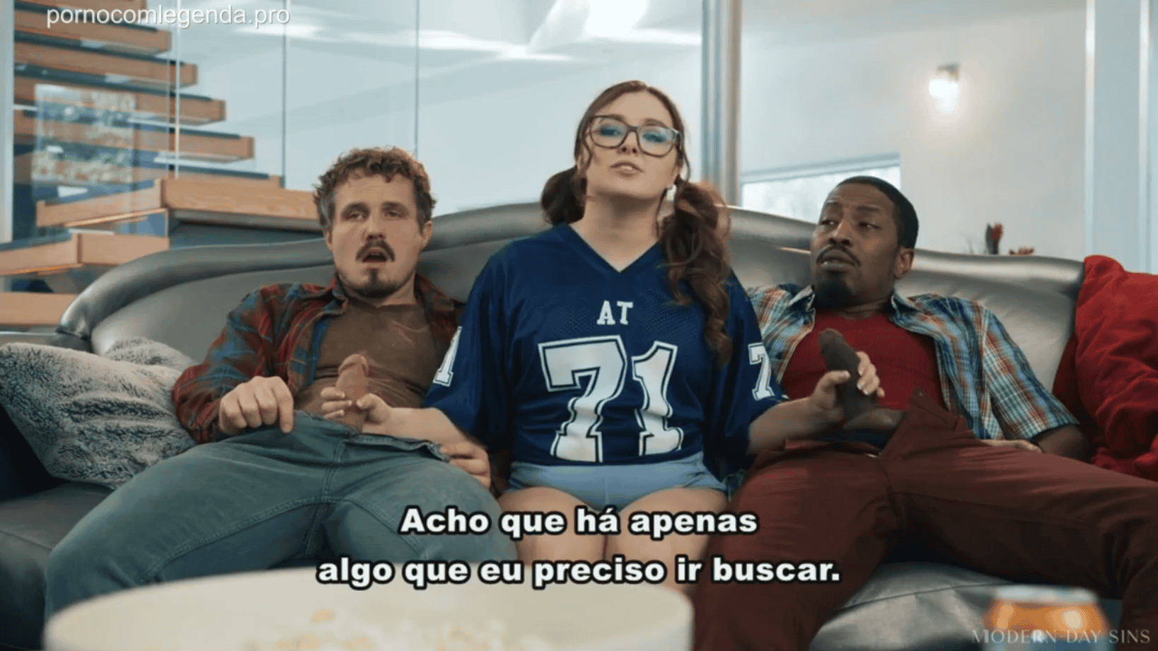 Com o pai completamente concentrado no jogo, a novinha foi mais ousada. Ela tirou o pau dos dois amigos do pai para fora. Um deles era um branquelo, enquanto o outro era um negão, com uma rola enorme. A safada, que já estava cheia de tesão, começou a masturbar os dois ao mesmo tempo, sentindo os paus ficarem duros em suas mãos. Sem perder tempo, ela foi direto no pau do negão, porque, como toda branquinha safada, ela sabia que adorava um pau preto.